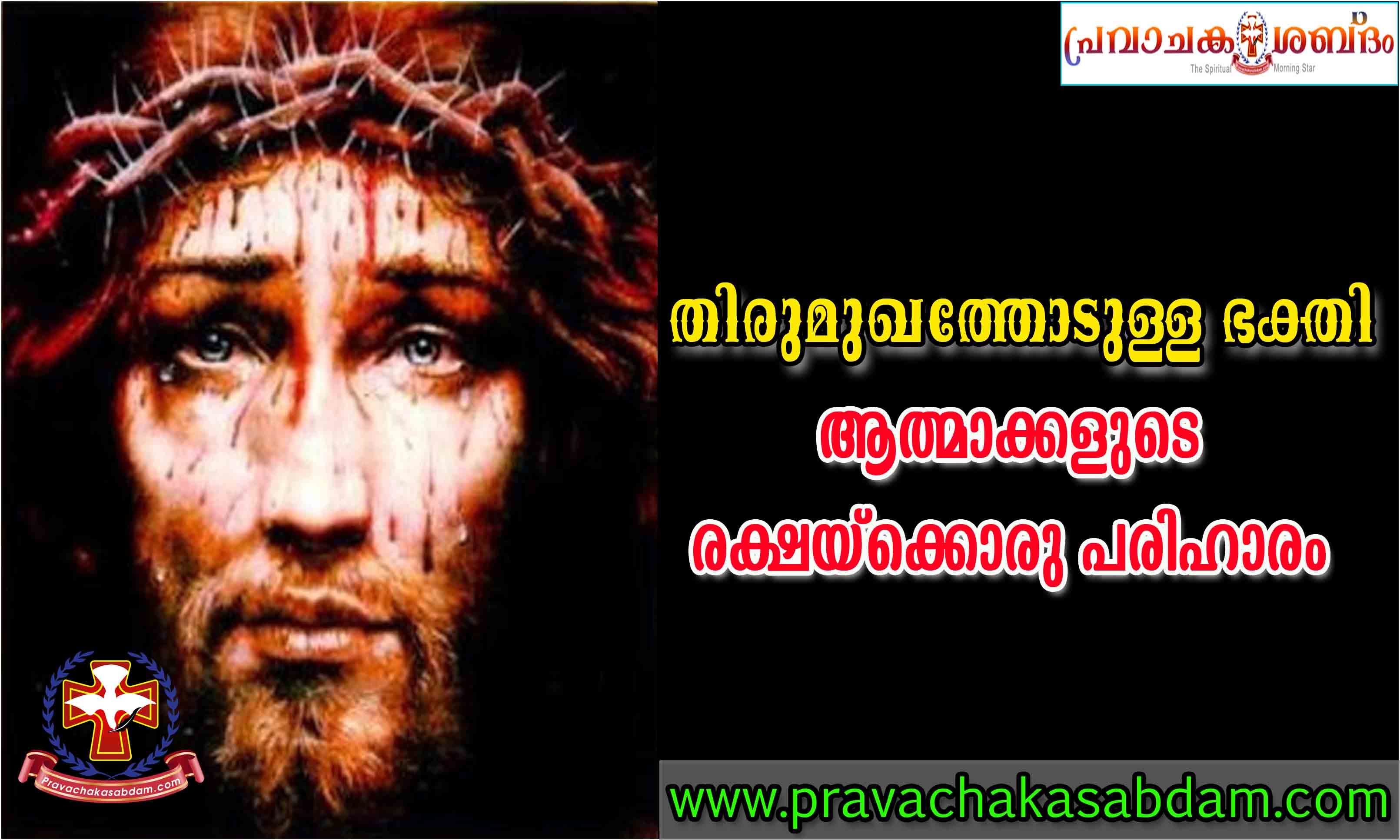 തിരുമുഖത്തോടുള്ള ഭക്തി ആത്മാക്കളുടെ രക്ഷയ്ക്കുള്ള പരിഹാര മാര്ഗ്ഗം