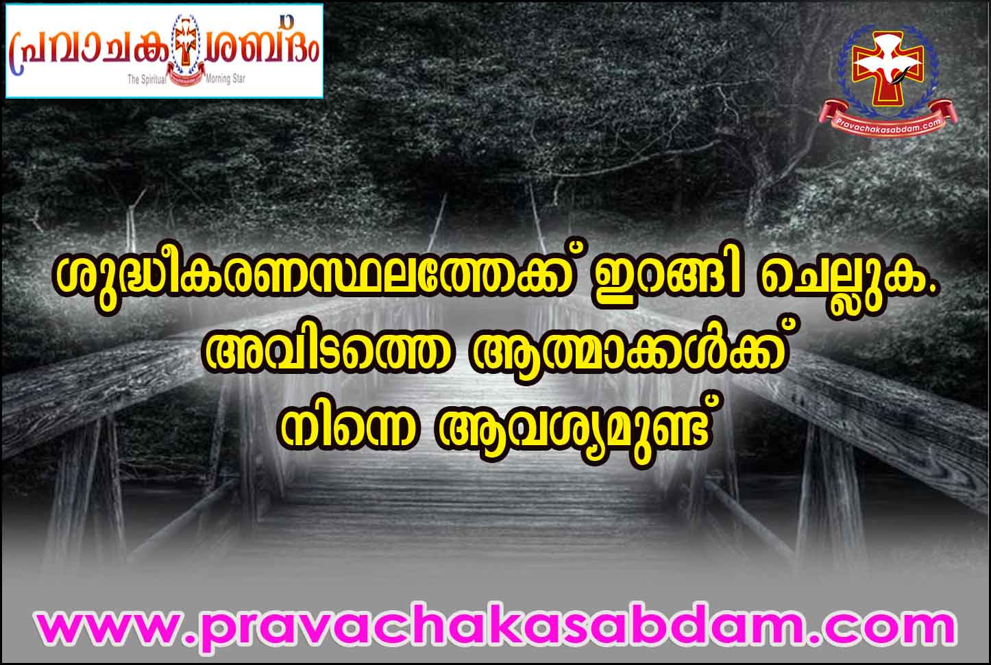 ശുദ്ധീകരണസ്ഥലത്തേക്ക് ഇറങ്ങി ചെല്ലുക. കാരണം, അവിടത്തെ ആത്മാക്കള്ക്ക് നിന്നെ ആവശ്യമുണ്ട്