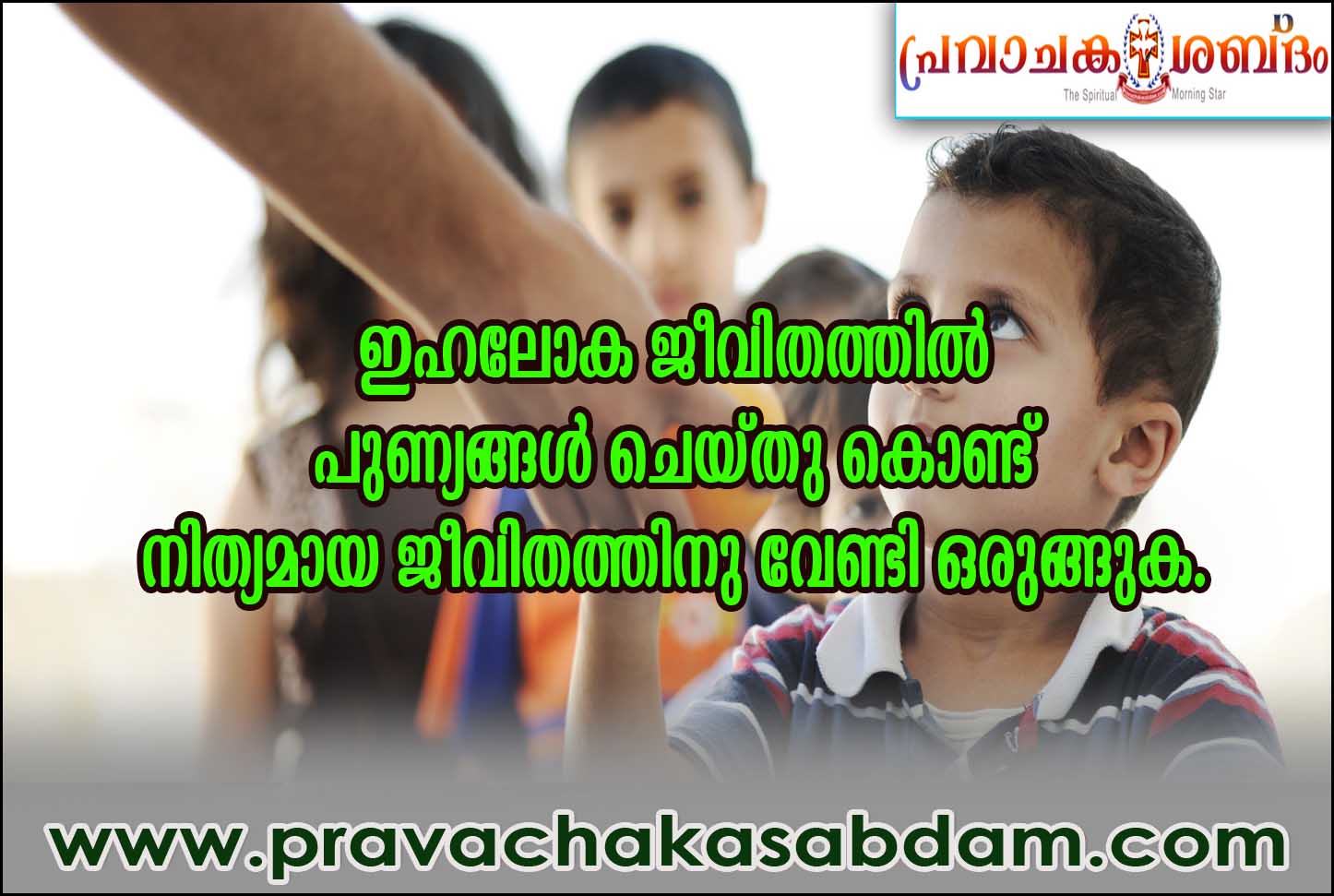 ഇഹലോക ജീവിതത്തില് പുണ്യങ്ങള് ചെയ്തു കൊണ്ട് നിത്യമായ ജീവിതത്തിനു വേണ്ടി ഒരുങ്ങുക.