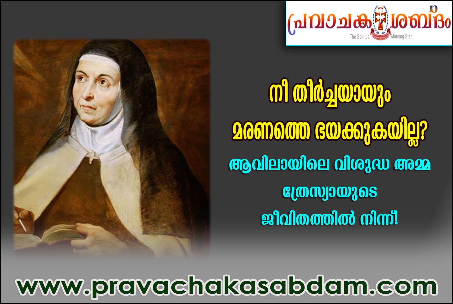 മരണത്തെ ഭയപ്പെടാതിരുന്ന വിശുദ്ധ അമ്മ ത്രേസ്യ ദൈവത്തിന്റെ പരിശുദ്ധി കണ്ട് ഭയന്നു വിറച്ചു
