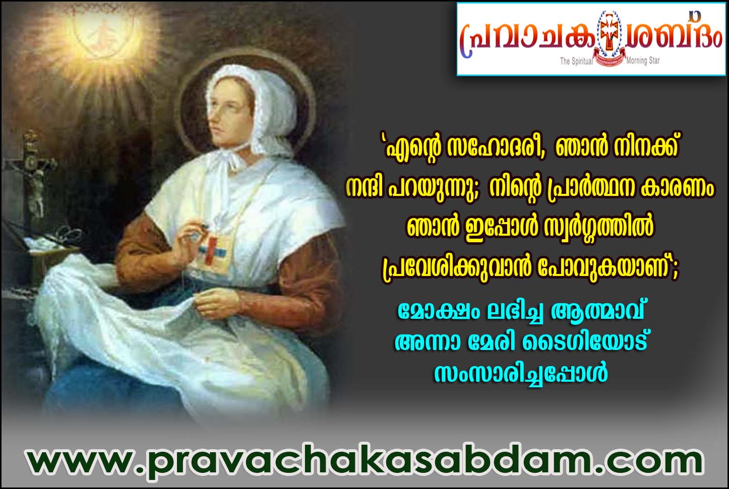 ശുദ്ധീകരണസ്ഥലത്ത് നിന്നും മോചനം ലഭിച്ച ആത്മാക്കൾ വാഴ്ത്തപ്പെട്ട അന്നാ മേരി ടൈഗിയോട് സംസാരിച്ചപ്പോള്
