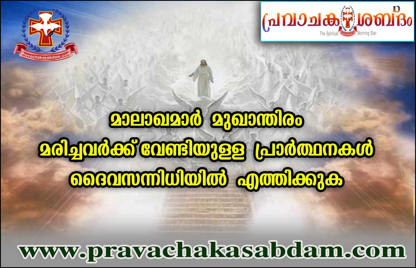 മരിച്ചവര്ക്ക് വേണ്ടിയുള്ള പ്രാര്ത്ഥനകള് മാലാഖമാര് മുഖാന്തിരം ദൈവസന്നിധിയില് എത്തിക്കുക