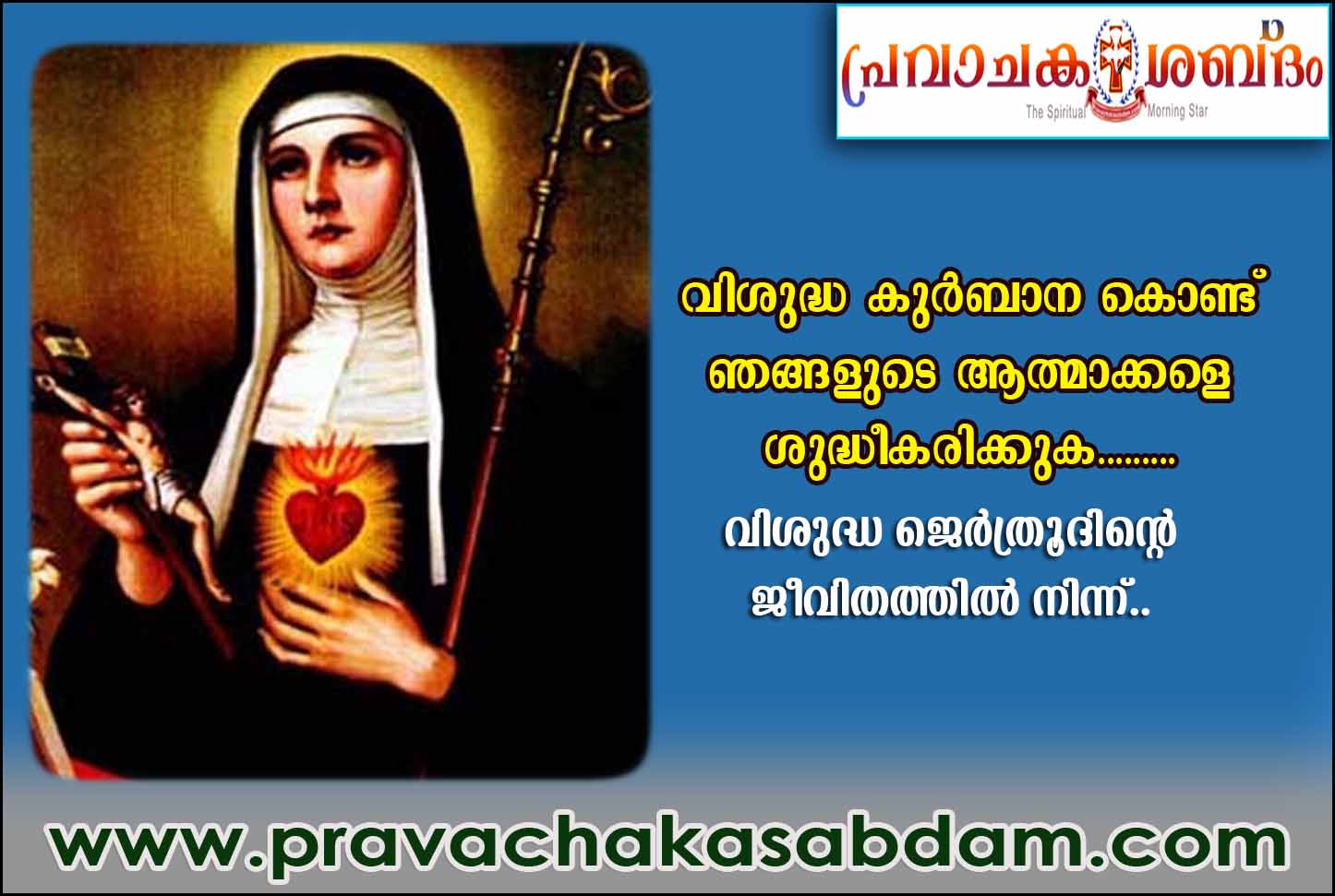 വിശുദ്ധ കുര്ബാന കൊണ്ട് ആത്മാവിനെ ശുദ്ധീകരിക്കുക; വിശുദ്ധ ജെര്ത്രൂദിന്റെ ജീവിതത്തില് നിന്ന്..