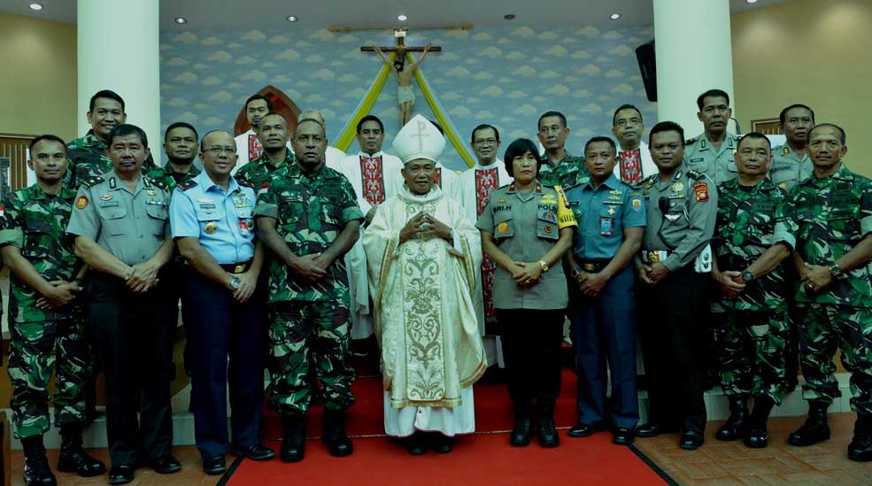 ജക്കാര്ത്ത: രാജ്യസുരക്ഷയ്ക്കായുള്ള അധ്വാനത്തില് യേശുവില് ആശ്രയിച്ച് ഇൻഡോനേഷ്യയിലെ പട്ടാള പോലീസ് ഉദ്യോഗസ്ഥർ. കഴിഞ്ഞ ദിവസം പൊന്തിയാനാക്ക് നഗരത്തിലെ ദേവാലയത്തിൽ അർപ്പിക്കപ്പെട്ട വിശുദ്ധ കുർബാന അര്പ്പണത്തില് ഇന്തോനേഷ്യയിലെ സായുധ സൈന്യത്തിന്റെ നേതൃത്വത്തിലുള്ള ഉന്നത ഉദ്യോഗസ്ഥരും പോലീസ് സേനയുടെ തലപ്പത്തിരിക്കുന്നവരുമായ അറുനൂറോളം സുരക്ഷാംഗങ്ങളാണ് പങ്കുചേര്ന്നത്. വെള്ളിയാഴ്ച ആർച്ച് ബിഷപ്പ് അഗസ്തീനസ് അഗസാണ് സൈനികര്ക്കായി പ്രത്യേക ദിവ്യബലി അർപ്പിച്ചത്.