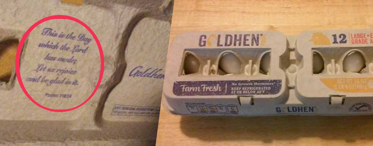 2. ഗോൾഡൻ എക്സ്: പ്രമുഖ മുട്ട വിൽപ്പന കമ്പനിയായ ഗോൾഡൻ എക്സും വിശ്വാസത്തിന്റെ കാര്യത്തില് ഏറെ മുന്നിലാണ്. തങ്ങളുടെ ഉത്പന്നം വില്ക്കുന്ന ബോക്സിൽ സങ്കീർത്തനം 118: 24 വാക്യമാണ് അവര് അടയാളപ്പെടുത്തിയിരിക്കുന്നത്. അത് ഇപ്രകാരമാണ് "കര്ത്താവ് ഒരുക്കിയ ദിവസമാണിന്ന്, ഇന്നു സന്തോഷിച്ചുല്ലസിക്കാം" എന്നതാണ് ആ വചനം. ആൾഡി സൂപ്പർ സൂപ്പർമാർക്കറ്റ് ശൃംഖലയാണ് ഗോൾഡൻ എക്സ് മുട്ടകൾ വിൽക്കുന്നത്. ഇവര്ക്ക് മുട്ടകള് നല്കുന്ന റോസ് ഏക്കർ ഫാമിന്റെ വെബ്സൈറ്റിലും ബൈബിൾ വചനങ്ങൾ കാണുവാൻ സാധിക്കും.