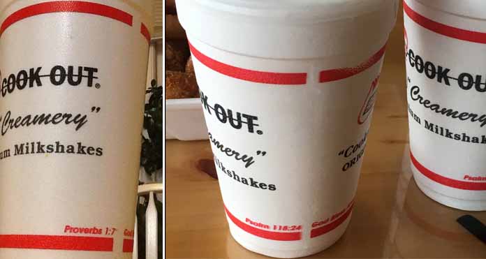 4. കുക്ക്- ഔട്ട്: അമേരിക്കയിലെ പ്രമുഖ ബർഗർ കമ്പനിയായ കുക്ക്- ഔട്ടും തങ്ങളുടെ ബിസിനസില് ക്രിസ്തുവിന് പ്രാധാന്യം നല്കി ബൈബിള് വചനം പ്രഘോഷിക്കാറുണ്ട്. കമ്പനിയുടെ കപ്പുകളിലും, മറ്റ് ഉൽപ്പന്നങ്ങളിലും ബൈബിൾ വചനങ്ങൾ കാണാം. അവരുടെ മിക്ക കടകളിലും ക്രൈസ്തവ ഗാനങ്ങളാണ് മുഴങ്ങുന്നത്. "അസാധാരണമായ ക്രൈസ്തവ അന്തരീക്ഷം" ഇവിടങ്ങളിൽ സൃഷ്ടിക്കപ്പെടുന്നുവെന്നാണ് ഒരു മാധ്യമം കുക്ക്- ഔട്ടിനെ അടുത്ത നാളുകളില് വിശേഷിപ്പിച്ചത്.
