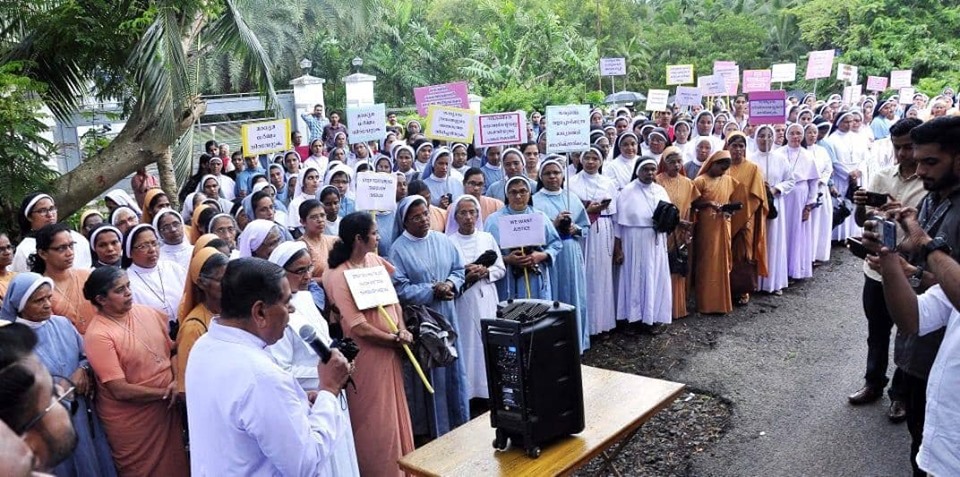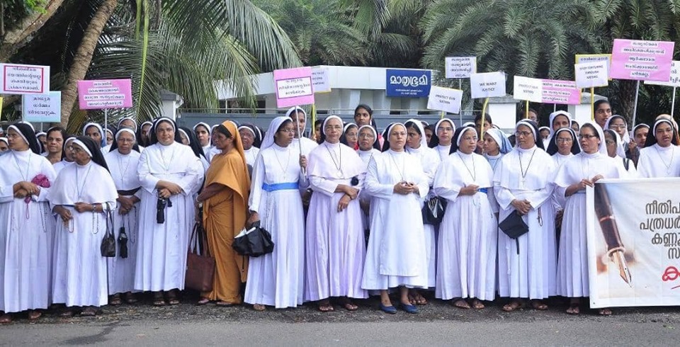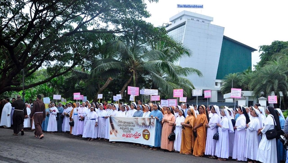 മാതൃഭൂമി ഓഫീസിന് മുന്നില് നൂറുകണക്കിന് സന്യസ്ഥരുടെ പ്രതിഷേധ കൂട്ടായ്മ