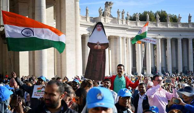 വത്തിക്കാന് സിറ്റി: വിശുദ്ധ പദവിയിലേക്ക് ഉയര്ത്തപ്പെട്ട മദര് മറിയം ത്രേസ്യയുടെ നാമകരണ ചടങ്ങുകള്ക്ക് സാക്ഷ്യം വഹിക്കാന് വത്തിക്കാനിലെത്തിയത് ആയിരത്തോളം മലയാളികള്. അതീവ സന്തോഷത്തില് പേപ്പല് പതാകകള്ക്കൊപ്പം ഭാരതത്തിന്റെ തിവര്ണ്ണ പതാകകളും സെന്റ് പീറ്റേഴ്സ് ചത്വരത്തിലെ ശുശ്രൂഷകള്ക്കിടെ പാറിപ്പറത്തിയത് അനേകരെ ആവേശഭരിതരാക്കി. വിദേശകാര്യ സഹമന്ത്രി വി മുരളീധരന്റെ നേതൃത്വത്തിലുള്ള ഇന്ത്യന് പ്രതിനിധി സംഘം ചടങ്ങില് മുന് നിരയില് തന്നെ ഉണ്ടായിരിന്നു. മദര് മറിയം ത്രേസ്യയുടെ വിശുദ്ധ പദവി പ്രഖ്യാപനത്തെ മലയാളികളടക്കമുള്ള വിശ്വാസി സഹസ്രങ്ങള് ഏറെ സന്തോഷത്തോടെയാണ് വരവേറ്റത്. മാര്പാപ്പ പ്രഖ്യാപനം നടത്തുമ്പോള് പതാക ഉയര്ത്തിവീശിയും വിശുദ്ധയുടെ ചിത്രങ്ങളും കട്ടൌട്ടും ഉയര്ത്തിപിടിച്ചുമാണ് വിശ്വാസി സമൂഹം തങ്ങളുടെ ആവേശം പ്രകടിപ്പിച്ചത്.