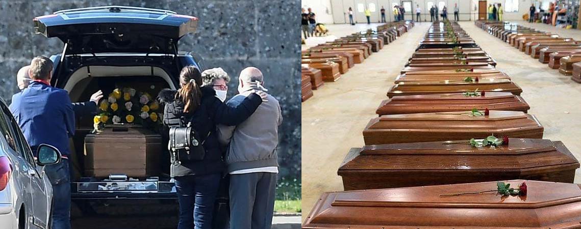ബേർഗമോ, ബേർഷ എന്നീ ടൗണുകളിൽ ഓരോ ദിവസവും നൂറുകണക്കിന് ആൾക്കാരാണ് മരിച്ചു വീഴുന്നുത്. ഓരോ ഭവനങ്ങളിലും രോഗം ബാധിച്ചവരോ മരിച്ചവരോ ഉണ്ട്. ചില ഭവനങ്ങളിൽ രണ്ടും മൂന്നും ആൾക്കാർ മരിച്ചതിൻ്റെ വേദന താങ്ങാനാവാതെ തളർന്നിരിക്കുന്നവർ. സംസ്കരിക്കാൻ സ്ഥലം ഇല്ലാത്തതിനാൽ ബോഡികൾ മറ്റ് സ്ഥലങ്ങളിൽ കൊണ്ട് ക്രമേഷൻ (ദഹനം) നടത്താനായ് കൊണ്ടുപോകുന്ന പട്ടാള ട്രക്കുകളുടെ നീണ്ട നിര ആരെയും കരയിപ്പിക്കുന്നതാണ്. തങ്ങളുടെ പ്രിയപ്പെട്ടവരുടെ മൃതദേഹങ്ങൾ ഒരുനോക്കു കാണാൻ പോലും സാധിക്കാതെ വിഷമിക്കുന്ന ബന്ധുജനങ്ങൾ.. ഏതാനും ആഴ്ചകൾ മുമ്പുവരെ കൊറോണ വൈറസ് പ്രായമായവരെ മാത്രം ബാധിക്കുന്ന അസുഖമാണ് എന്നു പറഞ്ഞു ലാഘവത്തോടെ ജീവിച്ച യുവജനങ്ങൾ ഇന്ന് മരണമടയുകയും ആശുപത്രി കയറിയിറങ്ങുകയും ചെയ്യുന്ന കാഴ്ച.