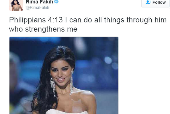 "നമ്മള് മതപരമായ കാര്യങ്ങള്ക്കല്ല പ്രാധാന്യം നല്കേണ്ടത്. ആത്മീയതയ്ക്കു കൂടുതല് ഊന്നല് നല്കുന്ന ജീവിതമാണ് ആവശ്യം. എന്റെ കുടുംബത്തില് ക്രൈസ്തവരായ പല ബന്ധുക്കളുമുണ്ടായിരുന്നു. ഇതിനാല് തന്നെ രക്ഷകനെ കണ്ടെത്തുവാന് എനിക്കു വേഗത്തില് കഴിഞ്ഞു". റിമയുടെ വാക്കുകളാണിത്. "എന്നെ ശക്തനാക്കുന്നവനിലൂടെ എനിക്ക് എല്ലാം ചെയ്യുവാൻ സാധിക്കും" എന്ന ഫിലിപ്പി ലേഖനത്തിൽ നിന്നുള്ള ബൈബിൾ വചനം ട്വീറ്റ് ചെയ്തുകൊണ്ടാണു പുതിയ വാര്ത്ത റിമ ഫാഖിഹ് അറിയിച്ചത്.