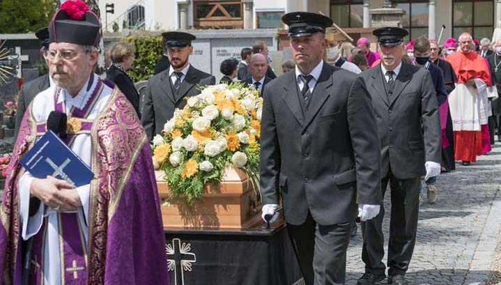 റേഗൻസ്ബുർഗ്: ജൂലൈ ഒന്നിനു അന്തരിച്ച ബെനഡിക്ട് പതിനാറാമന്റെ ജേഷ്ഠ സഹോദരൻ മോൺസിഞ്ഞോർ ജോര്ജ്ജ് റാറ്റ്സിംഗറുടെ മൃതസംസ്കാരം റീഗൻസ്ബർഗിലെ കത്തീഡ്രല് ദേവാലയത്തില് ഇന്നലെ നടന്നു. റേഗൻസ്ബുർഗ് ആർച്ച്ബിഷപ്പ് റുഡോൾഫ് വോഡർഹോൾസറിന്റെ മുഖ്യകാർമികത്വത്തിൽ അർപ്പിച്ച ദിവ്യബലിക്കു ശേഷമായിരുന്നു മൃതസംസ്ക്കാരം. നിരവധി കർദ്ദിനാളുമാരും ബിഷപ്പുമാരും വൈദികരും മൃതസംസ്കാര ശുശ്രൂഷയിൽ പങ്കാളികളായി. ശുശ്രൂഷകളുടെ മധ്യേ എമിരറ്റസ് ബെനഡിക്ട് പതിനാറാമന്റെ വികാരനിർഭരമായ സന്ദേശം അദ്ദേഹത്തിന്റെ പേഴ്സണൽ സെക്രട്ടറിയായ ആർച്ച് ബിഷപ്പ് ജോര്ജ്ജ് ഗാൻസ്വെയ്ൻ വായിച്ചു.
