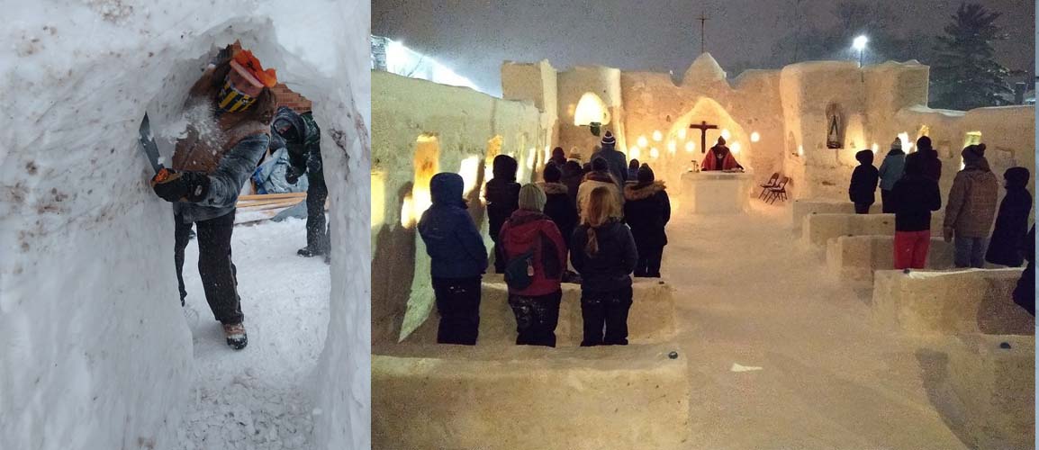 വിദ്യാർത്ഥികൾ ഐസ് കൊണ്ട് ചാപ്പൽ നിർമ്മിച്ചു: മഞ്ഞു കൊണ്ടുള്ള ദേവാലയത്തില് പതിവ് തെറ്റിക്കാതെ വിശുദ്ധ കുര്ബാന