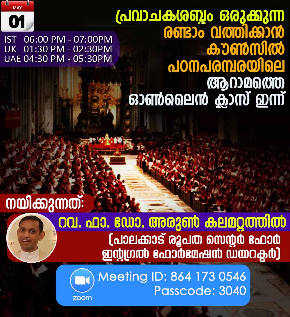 രണ്ടാം വത്തിക്കാൻ കൗൺസില് പഠനപരമ്പരയിലെ ആറാമത്തെ ഓണ്ലൈന് ക്ലാസ് ഇന്ന് (മെയ് 1)
