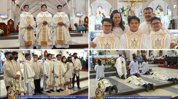 മനില: മൂന്നു സഹോദരങ്ങൾ ഒരേ ദിനത്തിൽ ഒരുമിച്ച് പൗരോഹിത്യം സ്വീകരിച്ച അപൂര്വ്വ ചടങ്ങിന് വേദിയായി ഫിലിപ്പീന്സിലെ സെന്റ് അഗസ്റ്റിൻ കത്തീഡ്രല്. കഗായാൻ ഡി ഒറോ അതിരൂപതാംഗങ്ങളായ ഡീക്കന്മാരായ ജെസേ ജെയിംസ് ഒലയ്വർ അവനീഡോ, ജെസ്റ്റോണി ഒലയ്വർ അവനീഡോ, ജെർസൺ റെയ് ഒലയ്വർ അവനീഡോ എന്നിവരാണ് പരിശുദ്ധ ദൈവമാതാവിന്റെ ജനന തിരുനാൾ ദിനമായ സെപ്തംബർ എട്ടിന്ഒരുമിച്ച് തിരുപ്പട്ടം സ്വീകരിച്ചത്. ‘കോൺഗ്രിഗേഷൻ ഓഫ് സേക്രട്ട് സ്റ്റിഗ്മാറ്റ’ സന്യാസ സഭയ്ക്കുവേണ്ടിയാണ് എല്ലാവരും പൗരോഹിത്യം സ്വീകരിച്ചത്. തിരുകര്മ്മങ്ങള്ക്ക് ആർച്ച്ബിഷപ്പ് ജോസ് കബന്തൻ മുഖ്യകാർമികത്വം വഹിച്ചു.