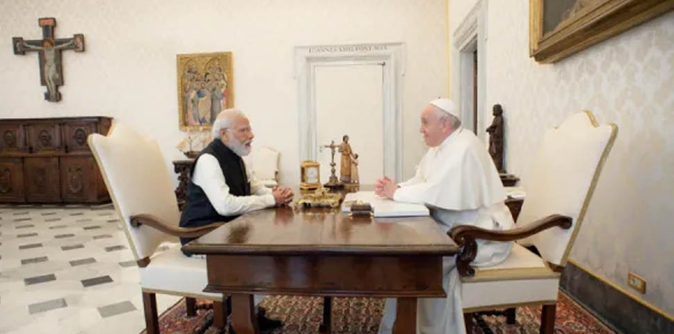 ലോക സമാധാനം, കാലാവസ്ഥാ വ്യതിയാനം, കോവിഡ് പ്രതിരോധം, മതപീഡനങ്ങൾ, മനുഷ്യാവകാശ സംരക്ഷണം, ഭക്ഷ്യ ക്ഷാമം തുടങ്ങിയ ആഗോള വിഷയങ്ങൾ ഇരുവരും ചർച്ച ചെയ്തുവെന്ന് വിവിധ അന്താരാഷ്ട്ര മാധ്യമ റിപ്പോര്ട്ടുകളില് പറയുന്നു. മാര്പാപ്പയുമായുള്ള കൂടിക്കാഴ്ച ഊഷ്മളമായിരിന്നുവെന്നും പാപ്പയെ ഭാരതത്തിലേക്ക് ക്ഷണിച്ചുവെന്നും മോദി നേരത്തെ ട്വീറ്റ് ചെയ്തിരിന്നു. .വത്തിക്കാന് സ്റ്റേറ്റ് സെക്രട്ടേറി കർദ്ദിനാൾ പിയട്രോ പരോളിൻ, വിദേശകാര്യ പ്രതിനിധി ആർച്ച് ബിഷപ്പ് പോൾ റിച്ചാർഡ് ഗല്ലഗെർ എന്നിവരുമായും മോദി കൂടിക്കാഴ്ച നടത്തിയിരിന്നു.