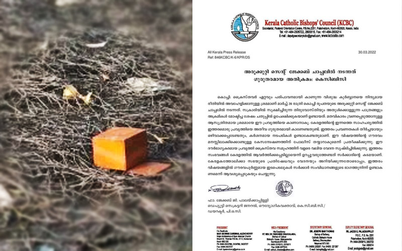 കൊച്ചി: അരൂക്കുറ്റി പാദുവാപുരം സെന്റ് ജേക്കബ് പള്ളിയിൽ സക്രാരി കുത്തിത്തുറന്ന് തിരുവോസ്തിയും കാസയും കവർന്നു ചതുപ്പുസ്ഥലത്തെറിഞ്ഞ സംഭവത്തിൽ പ്രതിഷേധിച്ച് കെസിവൈഎം ലാറ്റിൻ സംസ്ഥാന സമിതിയും വരാപ്പുഴ, കൊച്ചി, കോട്ടപ്പുറം, ആലപ്പുഴ രൂപത സമിതികളും സംയുക്തമായി എറണാകുളത്തു പ്രതിഷേധ സംഗമം നടത്തി. സംസ്ഥാന പ്രസിഡന്റ് ഷൈജു റോബിൻ അധ്യക്ഷത വഹിച്ചു.