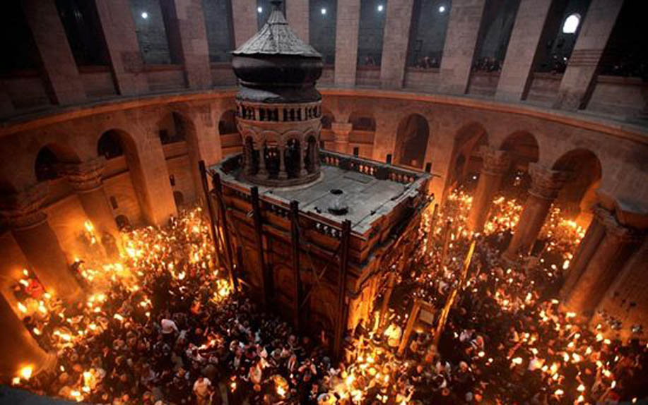 ജെറുസലേം തിരുകല്ലറ ദേവാലയത്തിലെ ഉത്ഥാന തിരുനാള് ശുശ്രൂഷയില് പതിനായിരങ്ങളുടെ പങ്കാളിത്തം