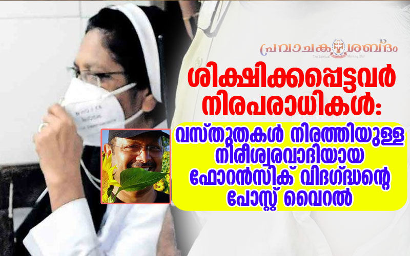''അവര് നിരപരാധികള് തന്നെ'': ജാമ്യത്തിന് പിന്നാലെ തെളിവുകള് നിരത്തിയുള്ള നിരീശ്വരവാദിയായ ഫോറന്സിക് വിദഗ്ദ്ധന്റെ പോസ്റ്റ് വീണ്ടും ചര്ച്ചയാകുന്നു