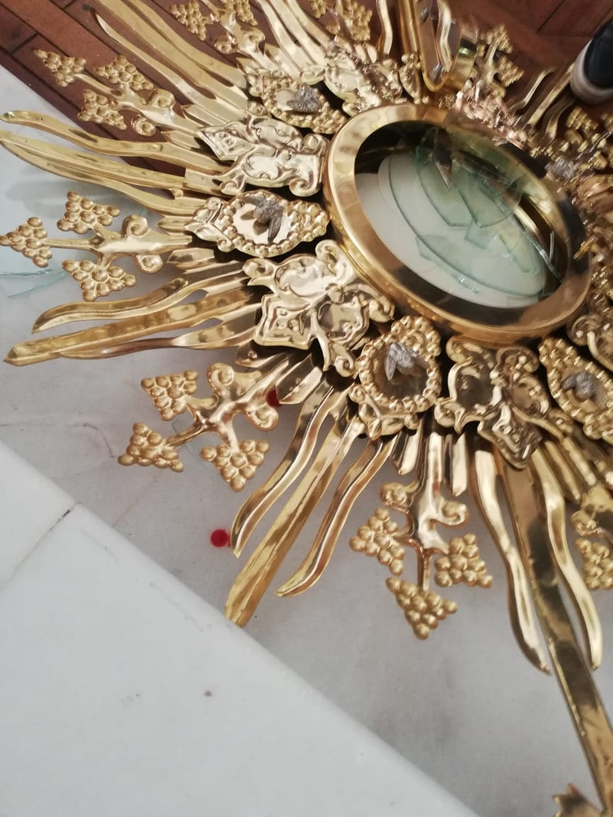 നശിപ്പിക്കപ്പെട്ട നിലയിൽ ഒരു മെഴുകുതിരിയും നിലത്ത് കിടപ്പുണ്ടായിരുന്നു. അരുളിക്കയിലും, നിലത്തും രക്തം കണ്ടത് അതിക്രമം നടത്തിയ ആൾക്ക് മുറിവേറ്റിരുന്നുവെന്ന സൂചനയാണ് നല്കുന്നത്. ദേവാലയത്തിന്റെ ചുമതലമുണ്ടായിരുന്ന ലൂയിസ് ഫാബിയൻ എന്ന വൈദികനും, രണ്ടു വിശ്വാസികളുമാണ് അരുളിക്ക നിലത്ത് വീണു കിടക്കുന്നത് കണ്ടെത്തിയത്. വിശുദ്ധ കുർബാനയെ ലക്ഷ്യം വെച്ച് നടന്ന ആക്രമണത്തിലേക്കാണ് സാഹചര്യ തെളിവുകൾ വിരൽ ചൂണ്ടുന്നതെന്ന് ബിഷപ്പ് ജോർജ് ആൽബർട്ടോ കവാസോസ് പറഞ്ഞു. ദിവ്യകാരുണ്യത്തിന് മുമ്പിൽ പ്രാർത്ഥിക്കാൻ വേണ്ടി പകൽ മുഴുവൻ ദേവാലയം തുറന്നുവെച്ചിരിക്കുകയായിരുന്നു. വിശുദ്ധ കുര്ബാനയോടുള്ള അവഹേളനത്തിന് പകരമായി പ്രായശ്ചിത്ത പ്രാർത്ഥനയ്ക്കു മെത്രാൻ ആഹ്വാനം ചെയ്തിട്ടുണ്ട്.