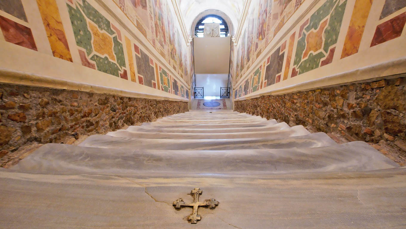 സെന്റ് ജോണ് ലാറ്ററന് ആര്ച്ച്ബസിലിക്കക്ക് സമീപമുള്ള ഈ വിശുദ്ധ പടികള് 400 വര്ഷങ്ങള്ക്ക് മുന്പ് സിക്സറ്റസ് അഞ്ചാമനാണ് സന്ദര്ശകര്ക്കായി ആദ്യമായി തുറന്നു നല്കിയത്. തുറന്നു കൊടുത്ത ആദ്യ നൂറ്റാണ്ടില് തന്നെ നിരവധി തീര്ത്ഥാടകര് സന്ദര്ശിച്ചതിനാല് പടികളിലെ മാര്ബിളില് ചില പ്രശ്നങ്ങള് ഉടലെടുത്തിരിന്നു. 1724-ല് ദൈവദാസനായിരുന്ന ബെനഡിക്ട് പതിമൂന്നാമനാണ് ഇത് മരം കൊണ്ട് പൊതിഞ്ഞ് സംരക്ഷിച്ചത്. അതിന് ശേഷം 2018-ല് ഒരു വര്ഷം നീണ്ട പുനരുദ്ധാരണ പ്രവര്ത്തനങ്ങളുടെ ഭാഗമായി മരം കൊണ്ടുള്ള കവചം നീക്കുകയുണ്ടായി. 2019-ല് കുറച്ചു സമയത്തേക്ക് മരം കവചം കൂടാതെയുള്ള വിശുദ്ധ പടികള് കാണുവാന് സന്ദര്ശകര്ക്ക് ഭാഗ്യം ലഭിച്ചിരുന്നു.