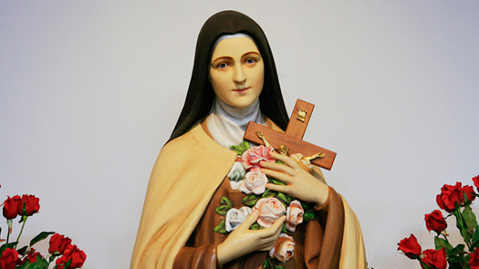 1873 ഫ്രാൻസിലെ അലെന് കോണില് ജനിച്ചു. ലൂയി മാര്ട്ടിനും സെലിയുമായിരുന്നു മാതാപിതാക്കൾ. ചെറുപുഷ്പത്തിൻ്റെ പതിനഞ്ചാം വയസ്സിൽ അവൾ ലിസ്യുവിലെ കർമ്മല മഠത്തിൽ ചേർന്നു. ഇരുപത്തിനാലാമത്തെ വയസ്സിൽ 1897 ൽ ക്ഷയരോഗം ബാധിച്ച് മരിച്ചു. മരണശേഷം സ്വർഗ്ഗത്തിൽ നിന്ന് ദൈവാനുഗ്രഹങ്ങളുടെ റോസാപുഷ്പങ്ങൾ വിതറാൻ തുടങ്ങിയ അവളെ 1925ൽ വിശുദ്ധ പദവിയിലേക്ക് ഉയർത്തി. അസീസിയിലെ വിശുദ്ധ ഫ്രാൻസിസിനെ പോലെ ലോകത്ത് ഏറ്റവും അധികം ബഹുമാന്യതയായ വിശുദ്ധരിൽ ഒരാളാണ് വി. കൊച്ചുത്രേസ്യാ ഏഷ്യയിലെ ഏറ്റവും വലിയ അത്മായ സംഘടനയായ ചെറുപുഷ്പ മിഷലീഗ് അവളുടെ പ്രേക്ഷക തീഷ്ണതയിൽ അധിഷ്ഠിതമാണ്.