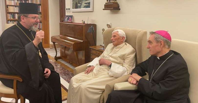 പ്രാർത്ഥനയുടെ ശക്തി മാത്രമാണ് ഉക്രേനിയൻ ജനതയെ ജീവനോടെ നിലനിർത്തുന്നതെന്നു ആർച്ച് ബിഷപ്പ് പറഞ്ഞു, രാജ്യത്തെ സ്ഥിതിഗതികൾ താൻ സൂക്ഷ്മമായി നിരീക്ഷിക്കുന്നുണ്ടെന്നും ഉക്രേനിയൻ ജനതയുടെ കഷ്ടപ്പാടുകളിൽ അതീവ ദുഃഖമുണ്ടെന്നും സമാധാനം സംജാതമാകാന് താൻ എപ്പോഴും പ്രാർത്ഥിക്കുന്നതായും എമിരിറ്റസ് ബെനഡിക്റ്റ് പതിനാറാമന് പാപ്പ ആവര്ത്തിച്ചു. യുദ്ധത്തിന്റെ തുടക്കത്തിൽ പ്രാര്ത്ഥനയും ഐക്യദാര്ഢ്യവും വാഗ്ദാനം ചെയ്തു ബെനഡിക്ട് പതിനാറാമൻ എഴുതിയ കത്തിന് ആർച്ച് ബിഷപ്പ് നന്ദി പറഞ്ഞു. 2019 ഫെബ്രുവരിയിലാണ് ഇരുവരും ഇതിനു മുന്പ് അവസാന കൂടിക്കാഴ്ച നടത്തിയത്.