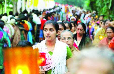 ഇന്നലെ രാവിലെമുതൽ വിശുദ്ധ അൽഫോൻസാ തീർഥാടന കേന്ദ്രത്തിലേക്കു വിശ്വാസികളുടെ നിലയ്ക്കാത്ത പ്രവാഹം തുടരുകയാണ്. ഫാ. ഏബ്രഹാം കണിയാംപടിക്കൽ, ഫാ. മാത്യു പുല്ലുകാലാ, റവ. ഡോ. ഡൊമിനിക് വെച്ചൂർ, ഫാ. മാത്യു തടത്തിൽ, ഫാ. ലൂക്കോസ് കൊട്ടുകാപ്പള്ളിൽ, റവ. ഡോ. ജോർജ് ഓലിയപ്പുറം എന്നിവർ ഇന്നലെ വിവിധ സമയങ്ങളിൽ കുർബാന അർപ്പിച്ചു. വൈകിട്ട് 6.30നു ജപമാല–മെഴുകുതിരി പ്രദക്ഷിണം ആരംഭിച്ചു. കത്തിച്ച മെഴുകുതിരികളുമായി ഒട്ടേറെ വിശ്വാസികൾ പ്രദക്ഷിണത്തിൽ പങ്കെടുത്തു. ഫാ. ജോസഫ് തെങ്ങുംപള്ളി നേതൃത്വം നൽകി.