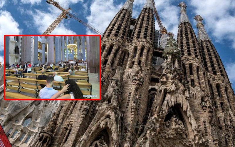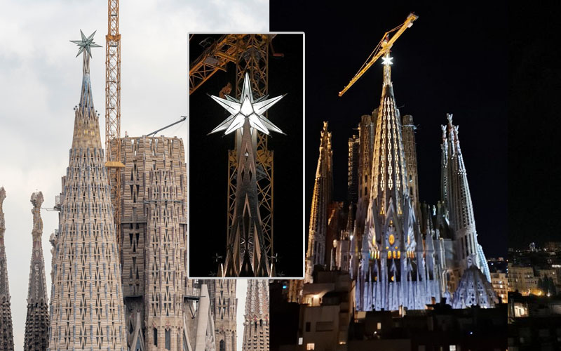 സ്പെയിനിലെ സഗ്രഡ ഫാമിലിയ ബസിലിക്കയുടെ ഗോപുരങ്ങൾ ആദ്യമായി പ്രകാശപൂരിതം