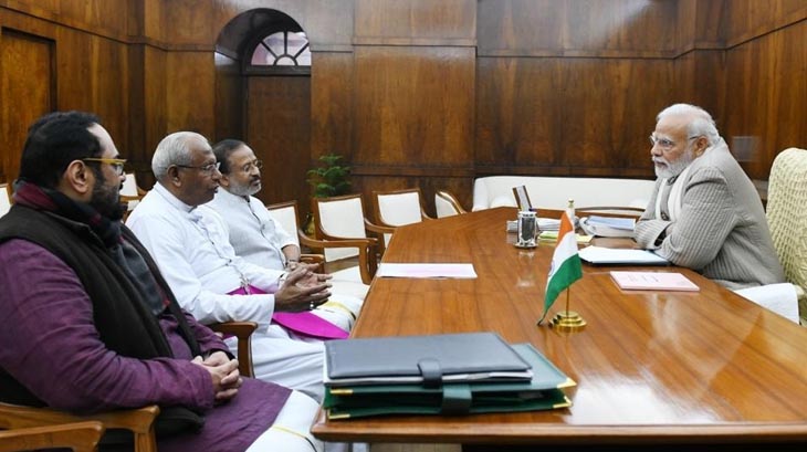 രാവിലെ പതിനൊന്നിനാണ് കേന്ദ്ര ഐടി സഹമന്ത്രി രാജീവ് ചന്ദ്രശേഖറിൻ്റെയും വിദേശകാര്യ, പാർലമെന്ററി കാര്യ സഹമന്ത്രി വി മുരളീധരന്റെയും സാന്നിധ്യത്തിലാണ് സിബിസിഐ പ്രസിഡൻ്റ് മാർ ആൻഡ്രൂസ് താഴത്ത് പ്രധാനമന്ത്രിയെ കണ്ടത്. പതിനഞ്ച് മിനിറ്റ് നീണ്ട് നിന്ന ചർച്ചയിൽ മാർപാപ്പയുടെ ഇന്ത്യ സന്ദർശനമാണ് മാർ ആൻഡ്രൂസ് താഴത്ത് പ്രധാനമായും ഉന്നയിച്ചത്. ക്രിസ്ത്യന് സഭ സ്ഥാപനങ്ങളുടെ പൊതുവായ വിഷയങ്ങളും ചർച്ചയായി.