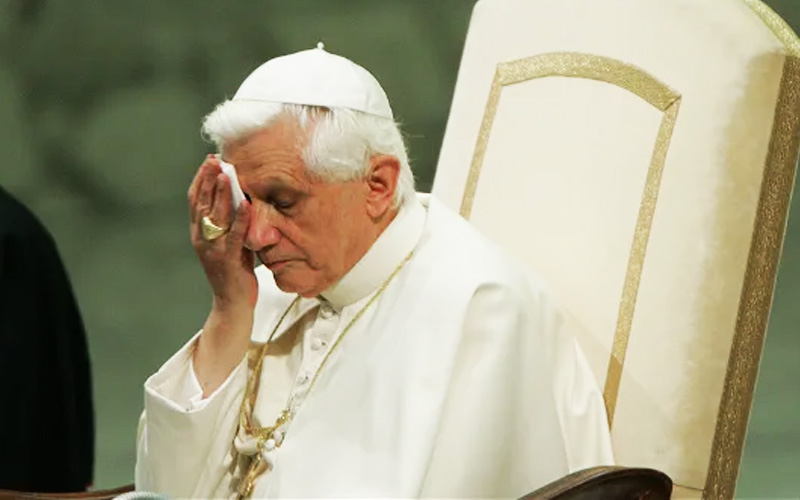 ചാപ്പലിൽ നിന്നുള്ള പാപ്പയുടെ മൃതശരീരത്തിന്റെ ചിത്രങ്ങള് വത്തിക്കാന് ഇന്നലെ പുറത്തുവിട്ടിരിന്നു. മാത്തര് എക്ലേസിയയിലെ ആശ്രമത്തില് പാപ്പയോടൊപ്പം കഴിഞ്ഞിരിന്നവര്ക്ക് മാത്രമാണ് ഇന്നലെ മൃതശരീരം കാണാന് അനുമതിയുണ്ടായിരിന്നത്. 2022-ലെ അവസാന ദിവസമായ ഡിസംബര് 31 പ്രാദേശിക സമയം രാവിലെ 9.34നാണ് (ഇന്ത്യന് സമയം ഉച്ചക്കഴിഞ്ഞ് 02:04) അദ്ദേഹം നിത്യസമ്മാനത്തിന് വിളിക്കപ്പെട്ടത്. ജോൺ പോൾ രണ്ടാമൻ മാർപാപ്പയുടെ പിൻഗാമിയായി 2005 ഏപ്രിൽ 19ന് സ്ഥാനമേറ്റ അദ്ദേഹം അനാരോഗ്യം മൂലം 2013 ഫെബ്രുവരി 28ന് സ്ഥാനത്യാഗം ചെയ്യുകയായിരിന്നു.