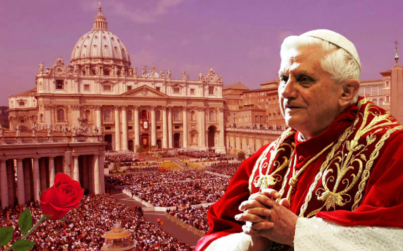 സെന്റ് പീറ്റേഴ്സ് ബസിലിക്കയിലെ ആർച്ച്പ്രീസ്റ്റ് കർദ്ദിനാൾ മൗറോ ഗാംബെറ്റിയുടെ മുഖ്യകാര്മ്മികത്വത്തിലായിരിന്നു പ്രാര്ത്ഥന. ചുവപ്പും സ്വർണ്ണ നിറവും ഇഴുകി ചേര്ന്ന വസ്ത്രമായിരിന്നു പാപ്പയെ ധരിപ്പിച്ചിരിന്നത്. കൂപ്പിയ കരങ്ങളില് ജപമാല ഉണ്ടായിരുന്നു. തന്റെ പേപ്പല് ഭരണകാലത്ത് അദ്ദേഹം ധരിച്ചിരുന്ന ചുവന്ന ഷൂസിന് പകരം കറുത്ത ഷൂസാണ് ധരിപ്പിച്ചിരുന്നത്. അതേസമയം ബെനഡിക്ട് പതിനാറാമനോട് പ്രാർത്ഥിക്കാനും ആദരാഞ്ജലികൾ അർപ്പിക്കാനും ആയിരക്കണക്കിന് ആളുകൾ സെന്റ് പീറ്റേഴ്സ് ബസിലിക്കയുടെ മുന്നില് നിരയായി നിലകൊണ്ടിരിന്നു.