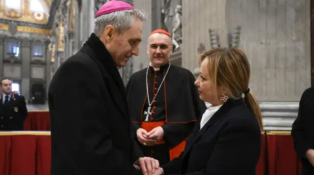 ഇറ്റാലിയന് പ്രധാനമന്ത്രി ജോർജിയ മെലോണിയും ബെനഡിക്ട് പതിനാറാമന് ആദരാഞ്ജലികള് അര്പ്പിക്കുവാന് എത്തിയിരുന്നു. മുന്പാപ്പയുടെ ഭൗതീകശരീരത്തിന് മുന്നില് മെലോണി നിശബ്ദമായി പ്രാര്ത്ഥിച്ചു. ഇതിന് പിന്നാലെ പാപ്പയുടെ സ്വകാര്യ സെക്രട്ടറിയായിരുന്ന ആര്ച്ച് ബിഷപ്പ് ജോര്ജ്ജ് ഗാന്സ്വെയിനെ കണ്ട് അനുശോചനം അറിയിക്കുകയും ചെയ്തു. ബെനഡിക്ട് പാപ്പ യുക്തിയുടേയും, വിശ്വാസത്തിന്റേയും കാര്യത്തില് പ്രബലനായിരിന്നുവെന്നു മെലോണി സ്മരിച്ചു. തന്റെ ജീവിതം സാര്വത്രിക സഭയുടെ സേവനത്തിനായി സമര്പ്പിച്ച ബെനഡിക്ട് പാപ്പ, ആത്മീയവും സാംസ്കാരികവും, ബൗദ്ധീകവുമായ ആഴത്തില് മനുഷ്യഹൃദയങ്ങളോടു സംസാരിക്കുകയായിരിന്നുവെന്നും അത് ഇനിയും തുടരുമെന്നും മെലോണി കൂട്ടിച്ചേര്ത്തു.