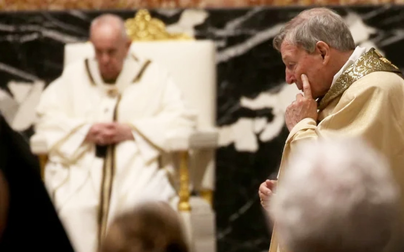 2014-2019 കാലയളവില് വത്തിക്കാന് ധനകാര്യാലയത്തിന്റെ ആദ്യത്തെ അദ്ധ്യക്ഷനായി സേവനം ചെയ്തിട്ടുള്ള കര്ദ്ദിനാള് ജോര്ജ്ജ് പെല് പ്രായപൂര്ത്തിയാകാത്ത അള്ത്താര ബാലന്മാരേ ലൈംഗീകമായി ദുരുപയോഗം ചെയ്തു എന്ന വ്യാജ ആരോപണത്തിന്റെ പേരില് 2019-ല് ജയിലില് അടക്കപ്പെടുകയായിരുന്നു. 2017-ല് പോലീസ് കേസ് ചാര്ജ്ജ് ചെയ്തതുമുതല് താന് നിരപരാധിയാണെന്ന് കര്ദ്ദിനാള് ആവര്ത്തിച്ച് പറഞ്ഞിട്ടുണ്ട്. പിന്നീട് ആരോപണങ്ങൾക്കു അടിസ്ഥാനമില്ലായെന്ന് നിരീക്ഷിച്ച ഓസ്ട്രേലിയന് ഹൈക്കോടതി കുറ്റവിമുക്തനക്കിയതിനെ തുടര്ന്ന് 2020-ലാണ് അദ്ദേഹം ജയില് മോചിതനായത്. എഴുത്തിനും, ധ്യാനത്തിനും, പ്രാര്ത്ഥനക്കും ധാരാളം സമയം ലഭിച്ചിരുന്ന ജയില് ജീവിതത്തേ ധ്യാനകാലയളവായാണ് അദ്ദേഹം വിശേഷിപ്പിച്ചിട്ടുള്ളത്.