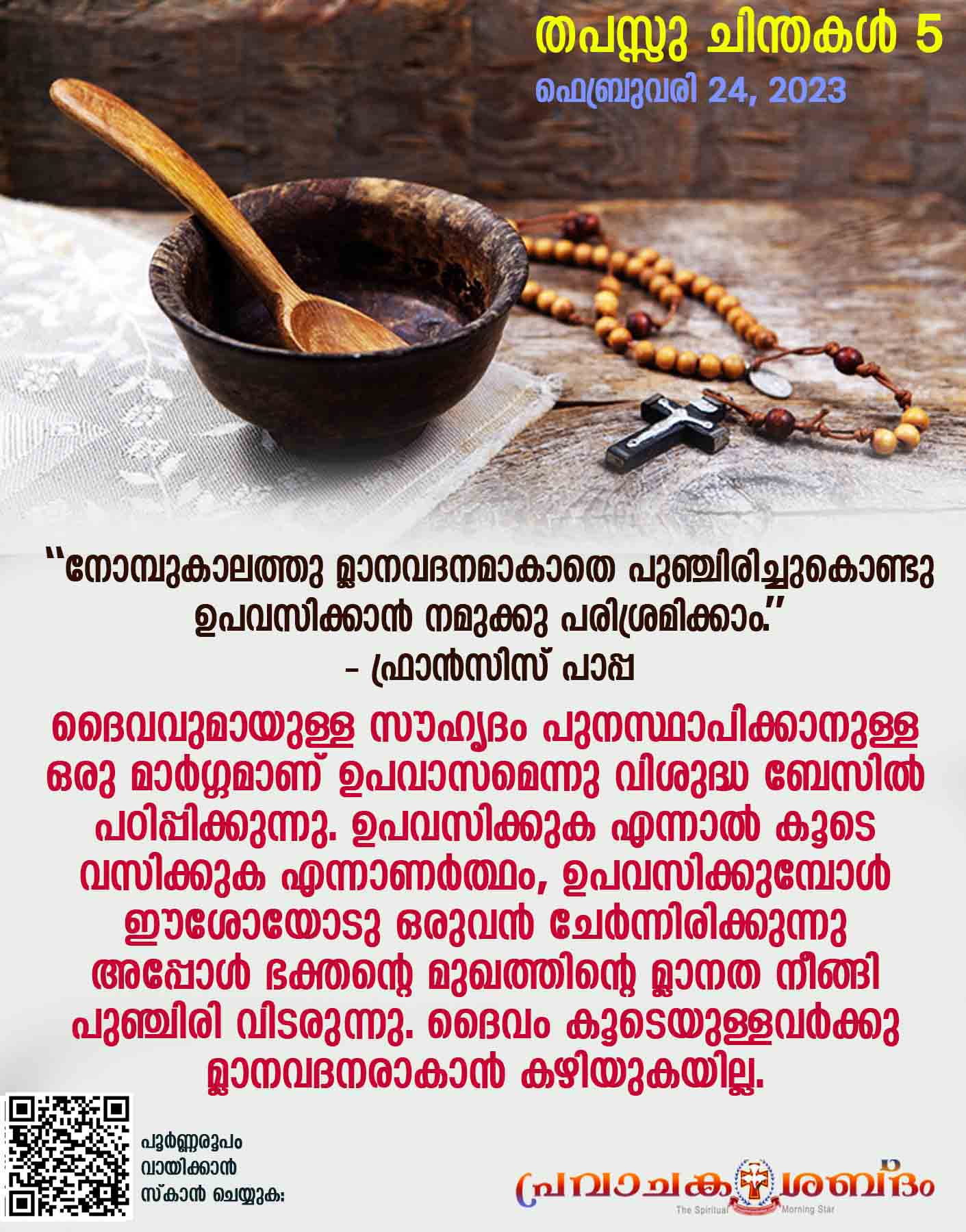 ഈ ഉപവാസ ദിനത്തിൽ ഈശോയുമായുള്ള സഹവാസത്താൽ നമ്മുടെ മുഖം സന്തോഷം നിറഞ്ഞതാക്കാം.