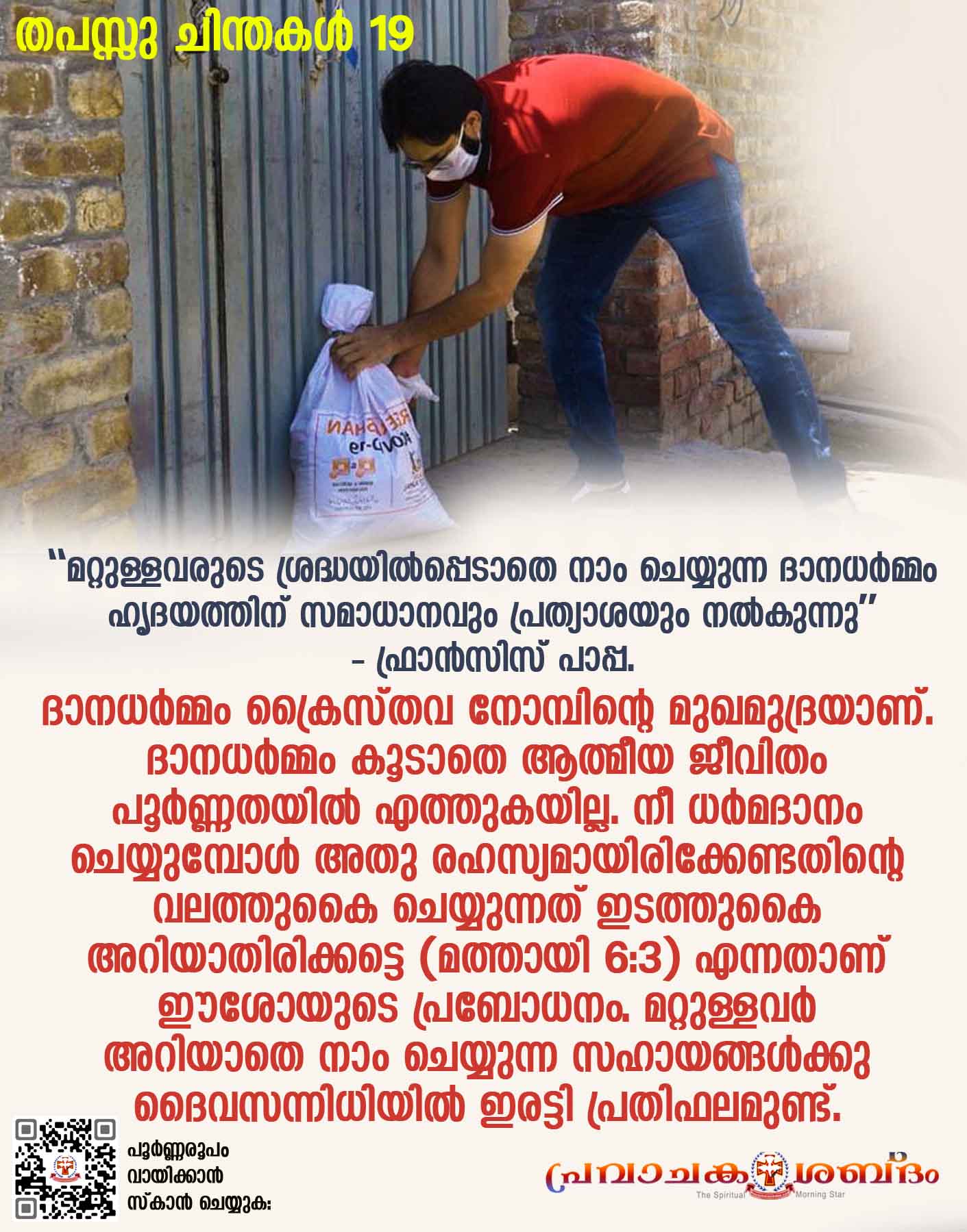 മറ്റുള്ളവരുടെ ശ്രദ്ധയിൽപ്പെടാതെ ദാനധർമ്മം ചെയ്യുക | തപസ്സു ചിന്തകൾ 19