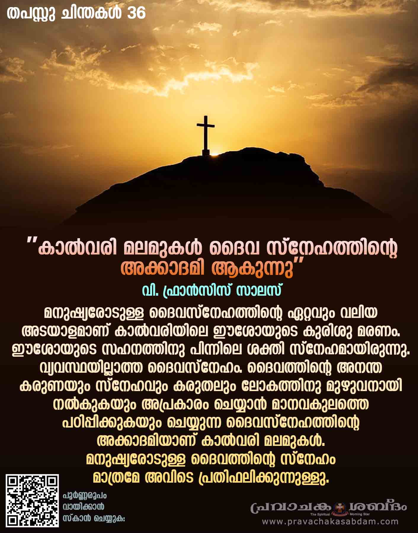 "കാൽവരി മലമുകൾ ദൈവസ്നേഹത്തിന്റെ അക്കാദമി ആകുന്നു" - വി. ഫ്രാൻസിസ് സാലസ്.