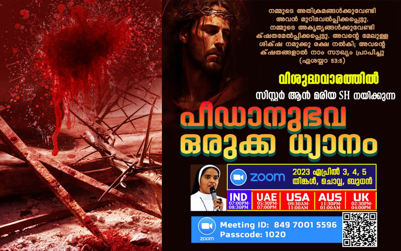 മക്കളില്ലാത്ത ദമ്പതികൾക്ക് വേണ്ടി പ്രമുഖ വചനപ്രഘോഷകയും ഗ്രേറ്റ് ബ്രിട്ടണ് സീറോ-മലബാര് രൂപതയുടെ നവ സുവിശേഷവത്കരണ കമ്മീഷന്റെ ചെയര്പേഴ്സണുമായ സിസ്റ്റര് ആന് മരിയ SH നയിക്കുന്ന ത്രിദിന ധ്യാനം ഓണ്ലൈനില്. കത്തോലിക്ക മാധ്യമമായ 'പ്രവാചകശബ്ദ'ത്തിന്റെ ആഭിമുഖ്യത്തില്, 2023 മെയ് 29, 30, 31 തിങ്കൾ, ചൊവ്വ, ബുധൻ ദിവസങ്ങളില് ZOOM-ലൂടെയാണ് പ്രത്യേക ശുശ്രൂഷ നടത്തപ്പെടുക. ഇന്ത്യന് സമയം വൈകീട്ട് 6 മണിക്ക് ആരംഭിക്കുന്ന ശുശ്രൂഷ 07:30നു സമാപിക്കും. ശുശ്രൂഷയ്ക്കു ഒരുക്കമായി ഇന്ത്യന് സമയം വൈകീട്ട് 05:30 മുതല് ജപമാല നടക്കും.