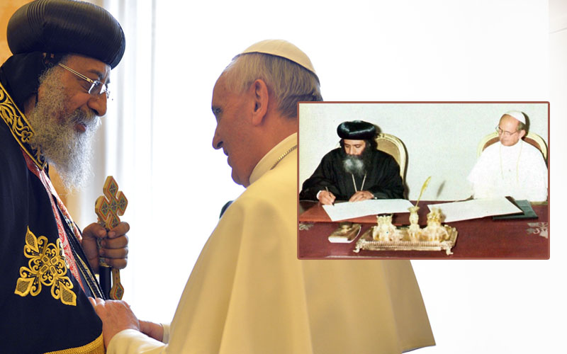 കൂടിക്കാഴ്ച്ചയ്ക്കിടെ പാത്രിയാര്ക്കീസ് തവദ്രോസ്, ഫ്രാൻസിസ് മാർപാപ്പയ്ക്ക് കോപ്റ്റിക് രക്തസാക്ഷികളുടെ തിരുശേഷിപ്പ് ഉള്പ്പെടുന്ന പേടകം കൈമാറി. രക്തസാക്ഷികൾ ജലത്താലും ആത്മാവിനാലും മാത്രമല്ല, രക്തത്താലും സ്നാനം ചെയ്യപ്പെട്ടുവെന്നു ഫ്രാൻസിസ് മാർപാപ്പ സ്മരിച്ചു. തങ്ങൾ അവരുടെ പ്രാർത്ഥനകൾ തേടുന്നുണ്ടെന്നും അത് അനുഗ്രഹമായി മാറുമെന്ന് വിശ്വസിക്കുന്നുവെന്നും കത്തോലിക്കരും ഈ രക്തസാക്ഷികളുടെ മാധ്യസ്ഥം തേടണമെന്ന് പാത്രിയാര്ക്കീസ് പറഞ്ഞു.