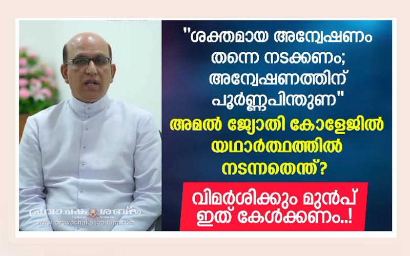 കാഞ്ഞിരപ്പള്ളി: അമൽജ്യോതി എൻജിനിയറിംഗ് കോളജിനെതിരേ നടക്കുന്ന ആക്രമ ണങ്ങളുടെ പശ്ചാത്തലത്തിൽ കാഞ്ഞിരപ്പള്ളി രൂപതയ്ക്ക് ഐക്യദാർഢ്യം പ്രഖ്യാപി ച്ച് ചങ്ങനാശേരി അതിരൂപത വികാരി ജനറാൾ മോൺ. ജോസഫ് വാണിയപ്പുരയ്ക്ക ലിന്റെ നേതൃത്വത്തിലുള്ള പ്രതിനിധി സംഘം കാഞ്ഞിരപ്പള്ളി രൂപതാകേന്ദ്രം സന്ദർശിchu