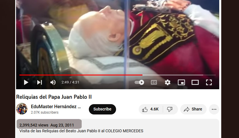 വിശുദ്ധ ജോണ് പോള് രണ്ടാമന് പാപ്പയുടെ അഴുകാത്ത ശരീരമെന്ന പേരില് വ്യാജ പ്രചരണം; വീഡിയോയിലുള്ളത് മെഴുക് രൂപം