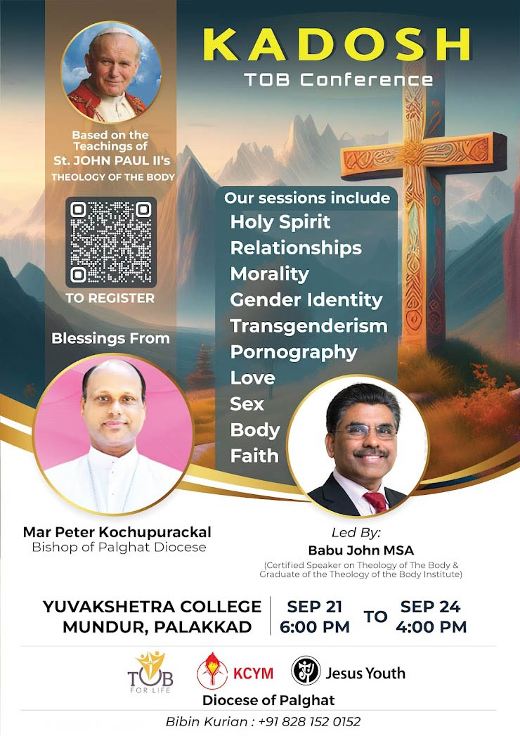 വിശുദ്ധ ജോൺ പോൾ രണ്ടാമൻ പാപ്പ മുന്നോട്ടുവച്ച 'ശരീരത്തിന്റെ ദൈവശാസ്ത്രം': യുവജനങ്ങള്ക്കായി പാലക്കാട് ത്രിദിന കോണ്ഫറന്സ്