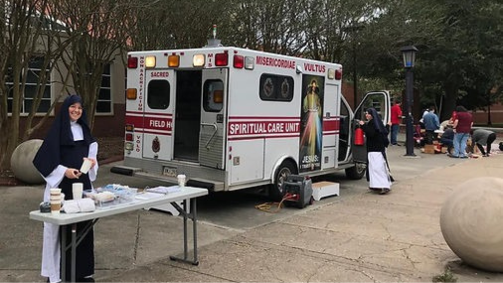 I love it! A religious order in Louisiana transformed this ambulance into a mobile confessional! They park it at tailgate parties, shopping malls, and anywhere else the Holy Spirit takes them! pic.twitter.com/2k2oZO9ptw