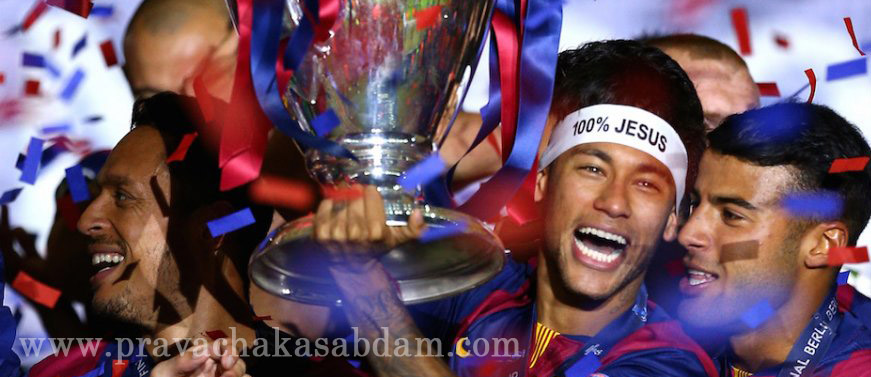 നേരത്തെ ജൂൺ 6 ന് ചാംപ്യൻസ് ലീഗ് ട്രോഫിയുടെ ഫൈനലിൽ നെയ്മറുൾപ്പെടുന്ന ബാഴ്സലോണ വിജയികളായപ്പോൾ ‘100% ജീസസ്’ എന്ന ഇതേ ബാന്ഡ് നെയ്മര് നെറ്റിയിൽ അണിഞ്ഞിരിന്നു. അന്ന് ബെർലിൻ ഒളിംപിക് സ്റ്റേഡിയത്തിൽ തടിച്ച് കൂടിയ 75,000 ഓളം വരുന്ന കാണികൾക്ക് മുമ്പിലും ടെലിവിഷനിലൂടെയും മറ്റും കളി നിരീക്ഷിച്ച കോടിക്കണക്കിന് ജനങ്ങളുടെ മുമ്പിലും തന്റെ ക്രിസ്തീയ വിശ്വാസം പങ്കുവച്ചത് നിരവധി മാധ്യമങ്ങളില് വാര്ത്തയായിരിന്നു. മൂന്നാമത്തെ ഗോൾ നേടി തന്റെ ടീമിനെ ജയിപ്പിച്ച ശേഷമായിരുന്നു ഇത്.