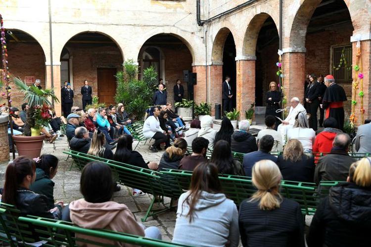 വേദനാജനകമായ വ്യത്യസ്ത പാതകളിലൂടെ ഈ ഒരു സ്ഥലത്ത് എത്തിച്ചേർന്ന എല്ലാവരെയും ദൈവം സ്വീകരിക്കുന്നു. അതിനാൽ നമ്മുടെ ജീവിതത്തിൽ സവിശേഷമായവ മറ്റുള്ളവരുമായി പങ്കുവയ്ക്കുവാനും, സ്വീകരിക്കുവാനും നമുക്ക് സാധിക്കണം. തടവറയെന്നത് കഠിനമായ ഒരു യാഥാർഥ്യമാണ്. നിരവധി പ്രശ്നങ്ങൾ ഇതിന്റെ ഉള്ളറകളിൽ ഉണ്ടെന്നിരിക്കിലും, ഇത് ധാർമ്മികവും ഭൗതികവുമായ പുനർജന്മത്തിന്റെ ഒരു സ്ഥലമായി മാറണമെന്നും പാപ്പ ആഹ്വാനം ചെയ്തു. പരസ്പര ബഹുമാനത്തിലൂടെയും, വിവിധ കഴിവുകളുടെ പ്രോത്സാഹനത്തിലൂടെയും, പരിപാലനയിലൂടെയും, മാനുഷികമായ അന്തസ്സ് വീണ്ടെടുക്കുവാൻ പരസ്പരമുള്ള സഹകരണം അനിവാര്യമാണെന്നും പാപ്പ ചൂണ്ടിക്കാട്ടി.