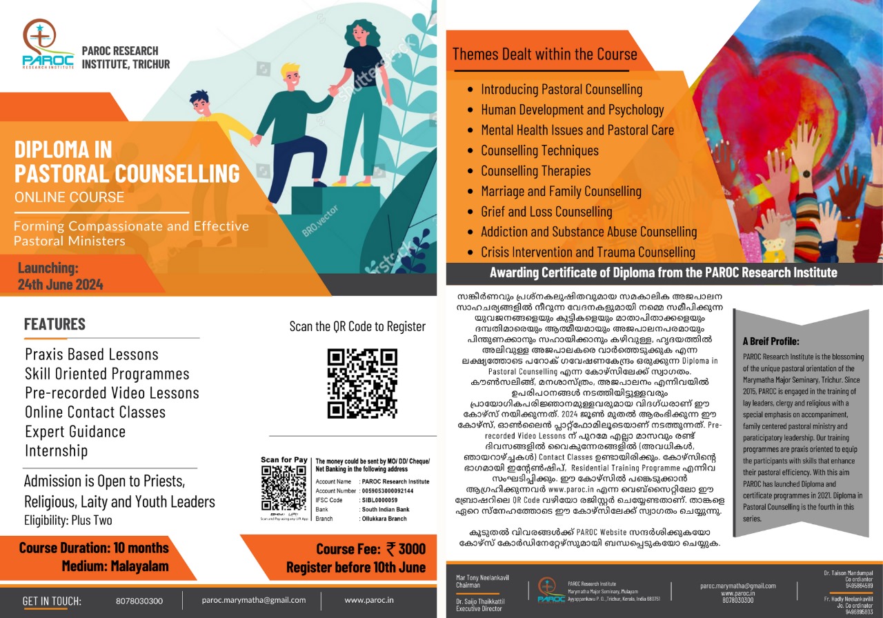 Diploma in Pastoral Counselling കോഴ്സിലേക്ക് അപേക്ഷ ക്ഷണിച്ചു