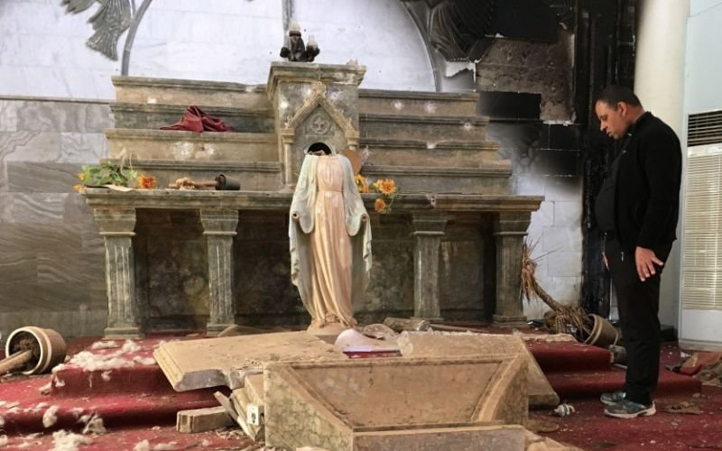 ഐസിസിൻ്റെ ക്രൂരത വേഗമേറിയതായിരുന്നു. 2014 ജൂൺ 20-ന്, ബഹുദൈവാരാധനയുടെ സ്ഥലങ്ങൾ എന്ന വിശേഷണത്തോടെ പ്രദേശത്തെ ക്രൈസ്തവ ദേവാലയങ്ങള് തകര്ത്ത് ഇസ്ലാമിക് സ്റ്റേറ്റ്സ് തങ്ങളുടെ വിദ്വേഷം പ്രകടമാക്കി. ആരാധനാലയങ്ങളെ "ശുദ്ധീകരിക്കാനുള്ള" കര്മ്മമ്മെന്നാണ് തീവ്രവാദികള് ഇതിനെ വിശേഷിപ്പിച്ചത്. ഇതിന്റെ ഭാഗമായി 2014 ജൂൺ 20-ന്അൽ-തഹേറ പള്ളിയുടെ മുകളിലുള്ള "അവർ ലേഡി ഓഫ് ടൈഗ്രീസ്" എന്ന ദൈവമാതാവിന്റെ രൂപം നശിപ്പിച്ചു. പിന്നീട് നടന്നത് സമാനതകളില്ലാത്ത ക്രൂരതകളായിരിന്നു.