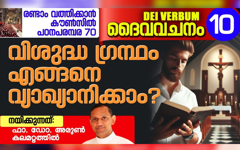 വിശുദ്ധ ഗ്രന്ഥം ശരിയായ രീതിയില് എങ്ങനെ വ്യാഖ്യാനിക്കണം? വിശുദ്ധ ഗ്രന്ഥ വ്യാഖ്യാനത്തില് എന്തൊക്കെ കാര്യങ്ങളാണ് ശ്രദ്ധിക്കേണ്ടത്? വിശുദ്ധ ഗ്രന്ഥകാരന് ഓരോ വിഷയത്തിലൂടെയും പറഞ്ഞ കാര്യങ്ങള് എങ്ങനെ തിരിച്ചറിയാം? കത്തോലിക്ക വിശ്വാസത്തിന്റെ ആധാരം ബൈബിൾ മാത്രമാണോ? ബൈബിളിൽ പറയാത്ത ചില കാര്യങ്ങളും രീതികളും സഭ ചെയ്യുന്നത് എന്തുക്കൊണ്ട്? തുടങ്ങീ ഓരോ ക്രൈസ്തവ വിശ്വാസിയും അറിഞ്ഞിരിക്കേണ്ട വലിയ ആത്മീയ രഹസ്യങ്ങളുമായി പ്രമുഖ ദൈവശാസ്ത്രജ്ഞനും പാലക്കാട് രൂപതാംഗവുമായ ഫാ. ഡോ. അരുണ് കലമറ്റത്തില്. 'പ്രവാചകശബ്ദം' ZOOM- ലൂടെ ഒരുക്കുന്ന രണ്ടാം വത്തിക്കാൻ കൗൺസിൽ ഓണ്ലൈന് പഠനപരമ്പരയുടെ എഴുപതാമത്തെ ക്ലാസ് (Dei Verbum 10).