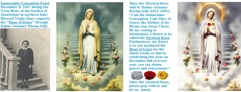 എന്നാൽ അതേ വർഷം ജൂലൈ 13ന് ശുഭ്രവസ്ത്രം ധരിച്ചുകൊണ്ടു പ്രത്യക്ഷപ്പെട്ട അമ്മയുടെ നെഞ്ചിൽ വാളുകൾക്കു പകരം ഉണ്ടായിരുന്നതു വെള്ള, ചുവപ്പ്, മഞ്ഞ നിറങ്ങളിലുള്ള മൂന്നു റോസാപ്പൂക്കളായിരുന്നു. 1947 ഡിസംബർ 8 അമലോത്ഭവ തിരുനാള് ദിനത്തില് മോന്തേക്യാരി കത്തീഡ്രലിൽ നല്കിയ പ്രത്യക്ഷീകരണത്തില് മിസ്റ്റിക്കൽ റോസ് എന്ന് അറിയപ്പെടാൻ ഞാൻ ആഗ്രഹിക്കുന്നുവെന്നും എല്ലാ വർഷവും ഡിസംബർ 8ന് ഉച്ചയ്ക്ക് ലോകത്തിന് വേണ്ടിയുള്ള കൃപയുടെ മണിക്കൂറായി ആഘോഷിക്കപ്പെടണമെന്നാണ് ആഗ്രഹമെന്നും വെളിപ്പെടുത്തിയിരിന്നു. തുടര്ന്നും ദൈവമാതാവ് നിരവധി സന്ദേശങ്ങളും നല്കിയിരിന്നു.