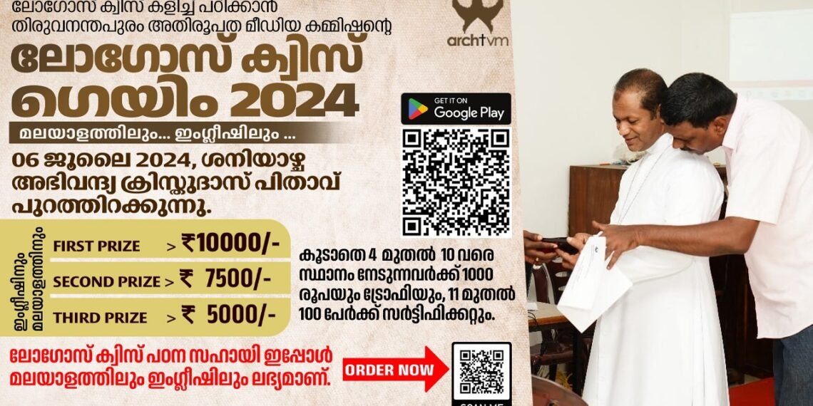 തിരുവനന്തപുരം: ഈ വർഷത്തെ ലോഗോസ് ക്വിസിന് ഒരുങ്ങാൻ സഹായിക്കുന്ന ലോഗോസ് ക്വിസ് ഗെയിം ആപ്പിന്റെ എട്ടാം പതിപ്പ് പ്രകാശനം ചെയ്തു. വെള്ളയമ്പലത്ത് നടന്ന ചടങ്ങിൽ ഗെയിം ആപ്പിന്റെ മലയാളം പതിപ്പ് അതിരൂപത സഹായ മെത്രാൻ ബിഷപ്പ് ക്രിസ്തുദാസും ഇംഗ്ലീഷ് പതിപ്പ് വികാർ ജനറൽ മോൺ. യൂജിൻ എച്ച് പെരേരയും പുറത്തിറക്കി. അതിരൂപത മീഡീയ കമ്മിഷൻ എക്സിക്യുട്ടീവ് സെക്രട്ടറി ഫാ. വിജിൽ ജോർജ്ജ് അധ്യക്ഷം വഹിച്ച പ്രകാശന കർമ്മത്തിൽ അസിസ്റ്റന്റ് എക്സിക്യുട്ടീവ് സെക്രട്ടറി സതീഷ് ജോർജ്ജ് സ്വാഗതവും കോഡിനേറ്റർ ഷാജി ജോർജ്ജ് നന്ദിയും പറഞ്ഞു.