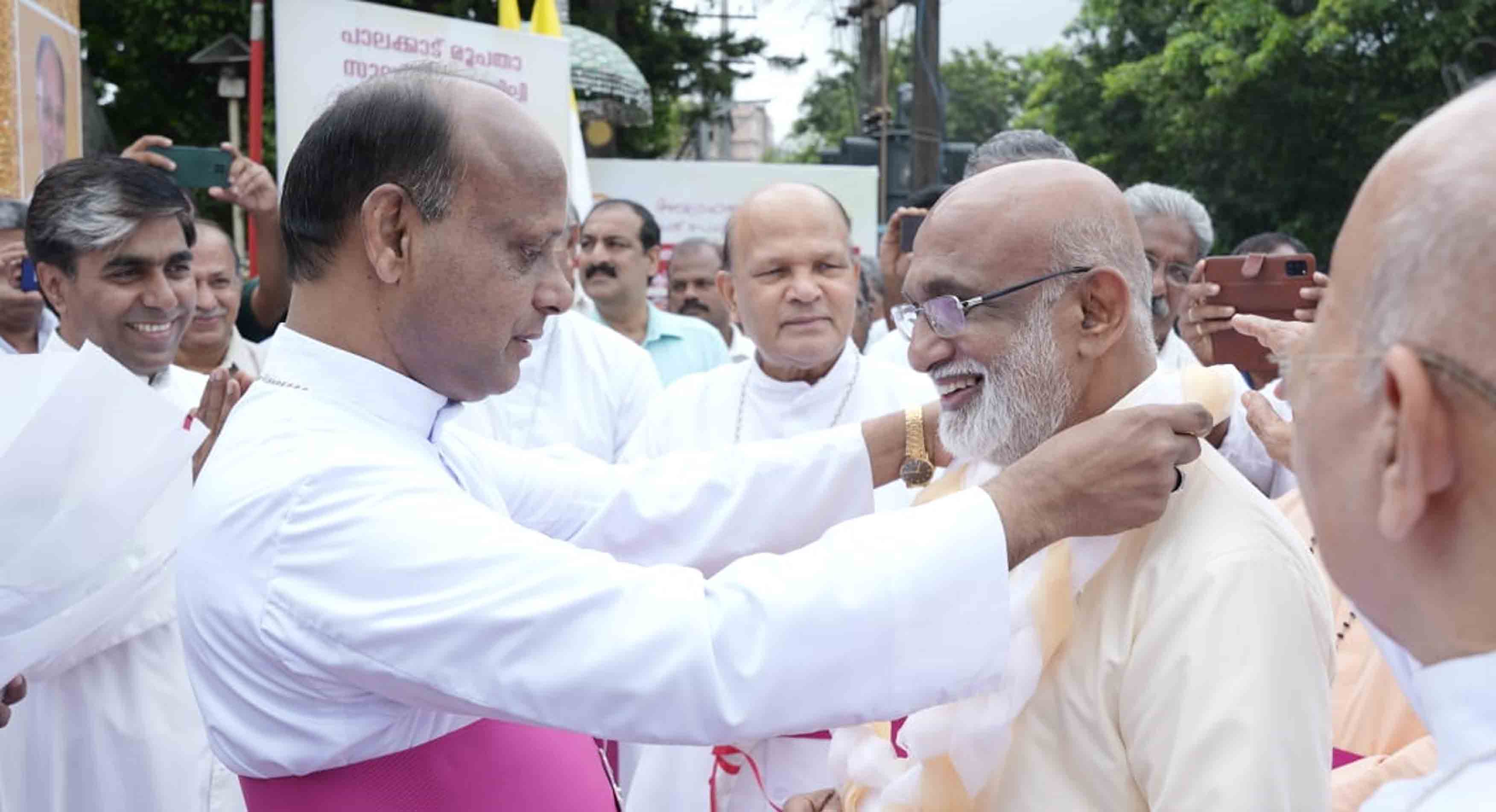 പാലക്കാട്: പാലക്കാട് രൂപതയുടെ സുവർണ്ണ ജൂബിലി സമാപന ആഘോഷവും സീറോ മലബാർ സഭയുടെ മേജർ ആർച്ച് ബിഷപ്പ് മാർ റാഫേൽ തട്ടിൽ മെത്രാപ്പോലീത്തയ്ക്കുളള രൂപതയുടെ ഔദ്യോഗിക സ്വീകരണവും ആയിരങ്ങളുടെ സാന്നിധ്യത്തിൽ പാലക്കാട് സെന്റ് റാഫേൽ കത്തീഡ്രൽ സ്ക്വയറിൽവെച്ച് നടന്നു. രൂപത സ്ഥാപിത വാര്ഷിക ദിനമായ ഇന്നലെ സെപ്റ്റംബർ 7 ശനിയാഴ്ച രാവിലെ 9 മണിക്ക് അഭിവന്ദ്യ പിതാക്കന്മാരെയും മറ്റ് വിശിഷ്ഠ അതിഥികളെയും കത്തീഡ്രൽ ദേവാലയ കവാടത്തിൽവെച്ച് സ്വീകരിച്ചു.